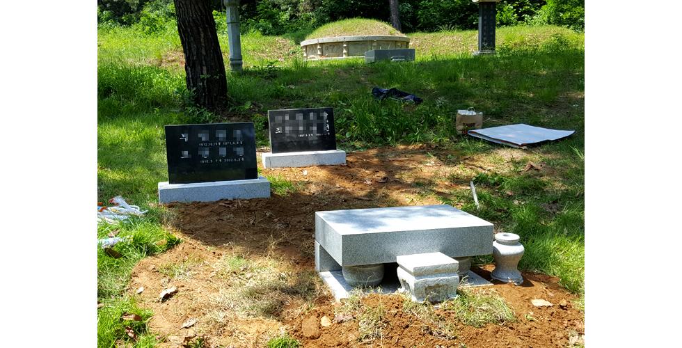 묘지조성의 위치에 대한 상담은 물론 가문의 예법에 따라 분묘를 조성하는 산역일 일체까지도 오랜 경험과 인력, 장비를 확보하여 성심껏 모시고있습니다.